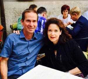 Here’s a pic of Bruce and me at a cafe in Budapest. We’re going to visit Telkibánya on our next trip.